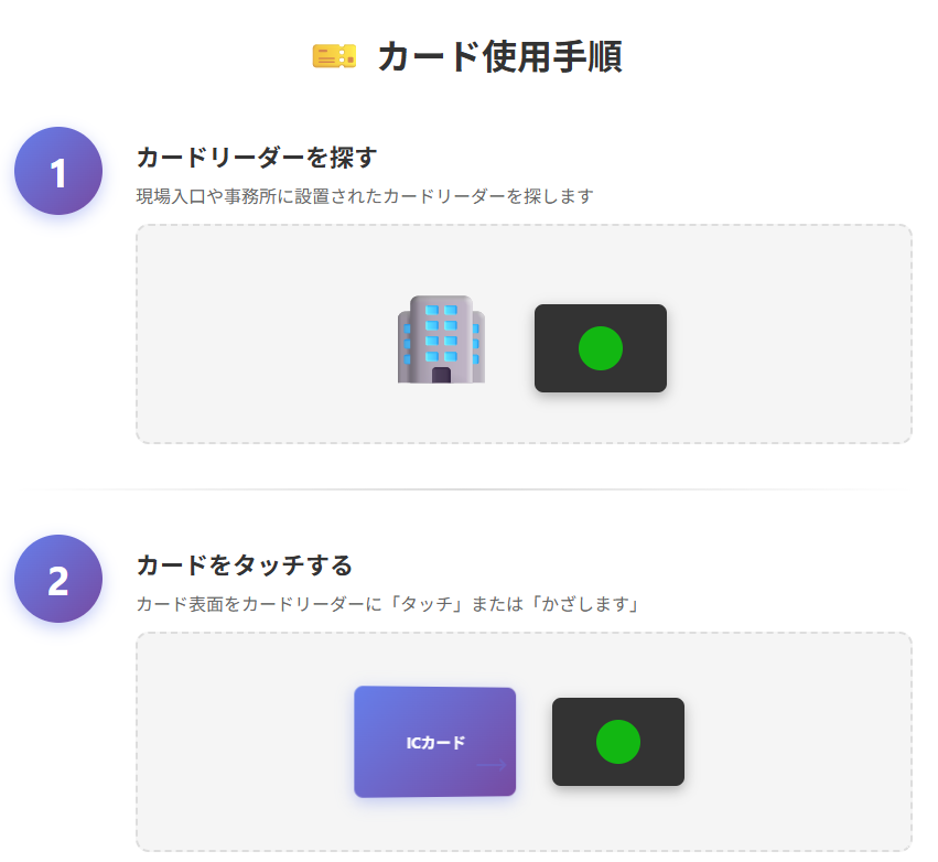 • 就業履歴(カードリーダーへのタッチで自動記録)
