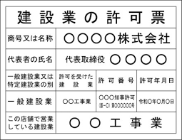 建設業許可を取得した事業者は、許可票(いわゆる「金看板」)を掲示する義務があります。営業所と工事現場の見えやすいところに、許可業者であることがわかるように掲示しなければなりません。